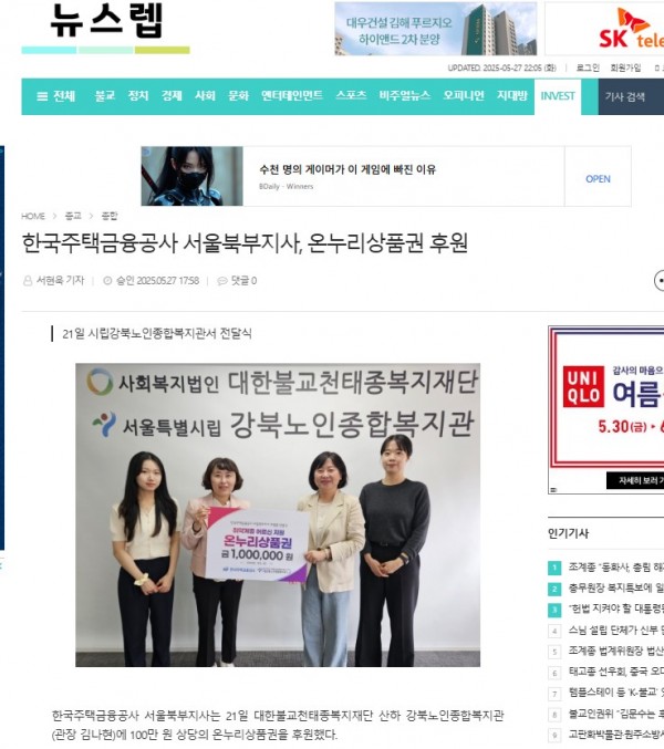 [2025.05.27] 한국주택금융공사 서울북부지사, 온누리상품권 후원 - 뉴스렙