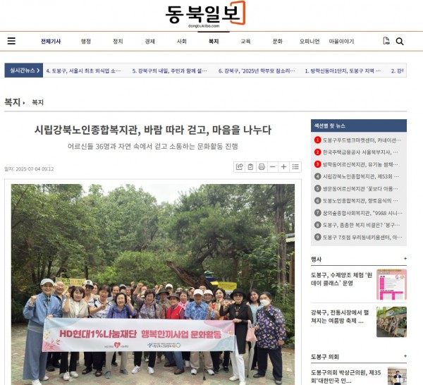 [2025.07.04]  시립강북노인종합복지관, 바람 따라 걷고, 마음을 나누다 - 동북일보