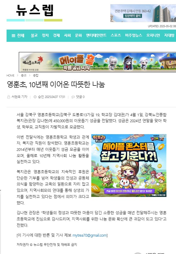[2025.04.07] 영훈초, 10년째 이어온 따뜻한 나눔 - 뉴스렙