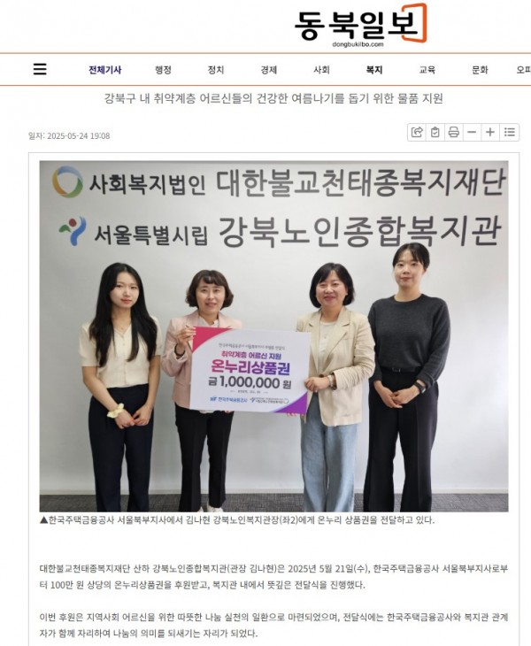 [2025.05.24] 한국주택금융공사 서울북부지사, 온누리상품권 후원 - 동북일보