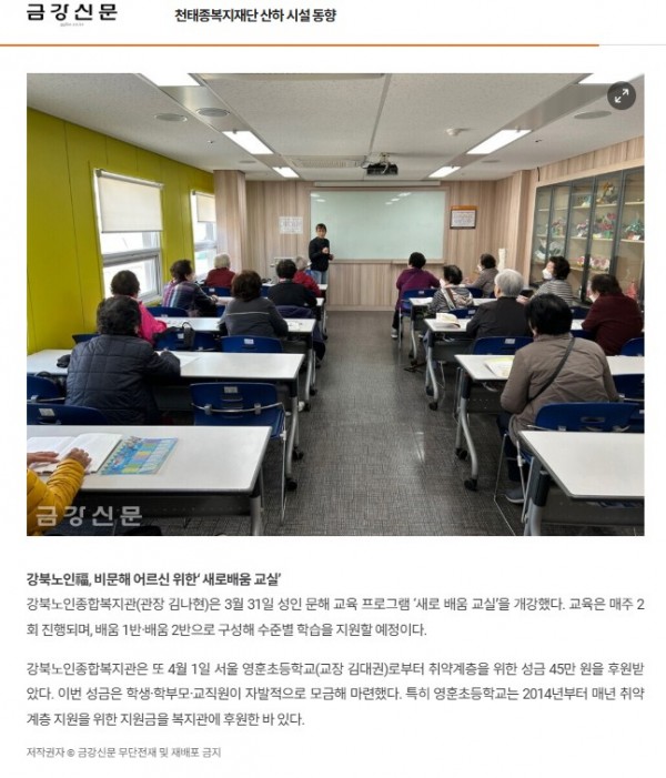 [2025.04.07] 천태종복지재단 산하 시설 동향 '새로배움교실' - 금강신문