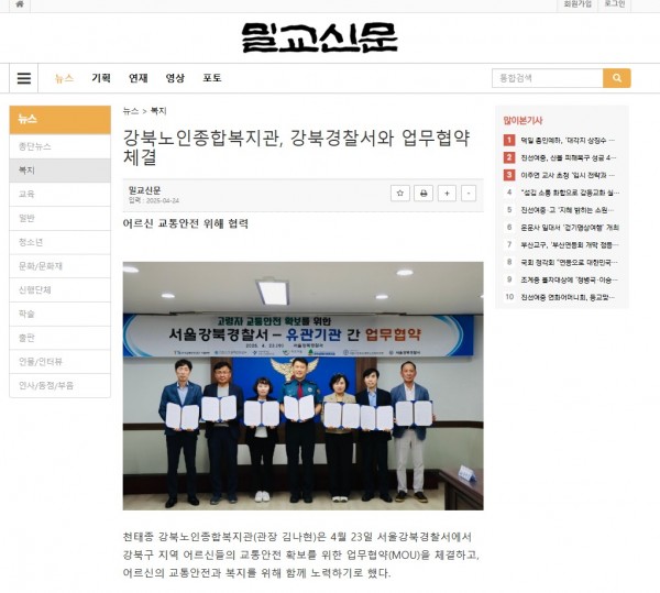[2025.04.24] 강북노인종합복지관, 강북경찰서와 업무협약 체결 - 밀교신문