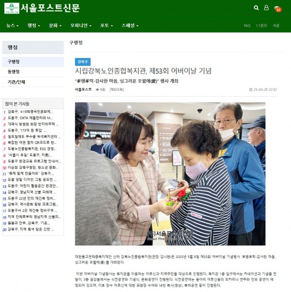 [2025.04.29] 시립강북노인종합복지관, 제53회 어버이날 기념 - 서울포스트신문