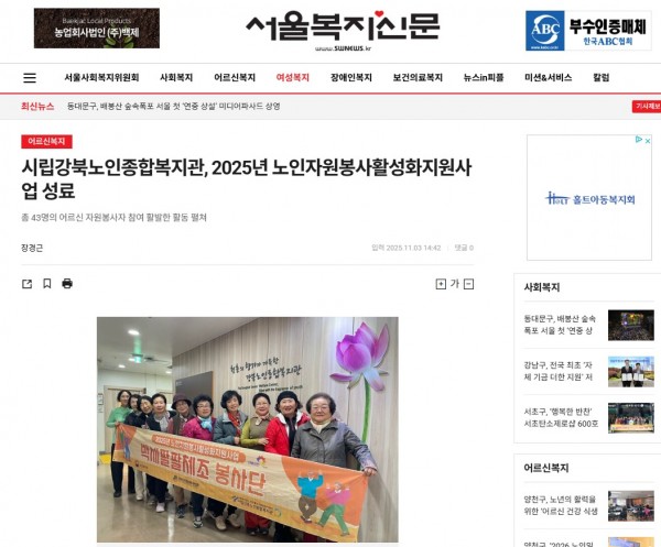 [2025.11.03] 시립강북노인종합복지관, 2025년 노인자원봉사활성화지원사업 성료 - 서울복지신문