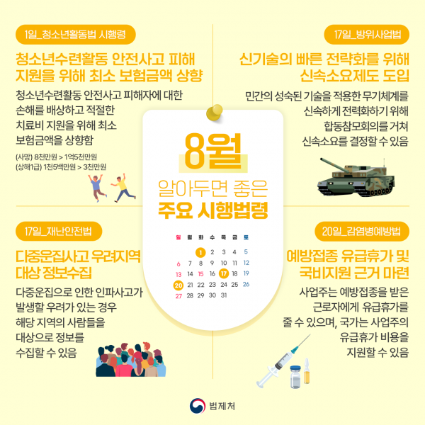 "예방접종시 유급휴가 부여"… 8월의 달라지는 법령