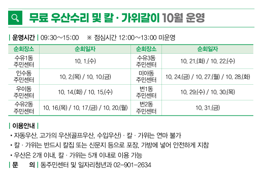 [강북구] 10월 무료 우산수리 및 칼.가위갈이 운영