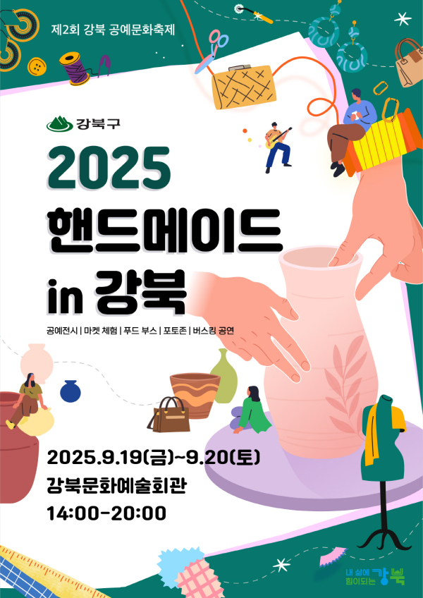 서울 강북구가 19일과 20일 이틀간 강북문화예술회관에서 제2회 강북 공예문화축제 ‘2025 핸드메이드in강북’을 개최한다고 17일 밝혔다.