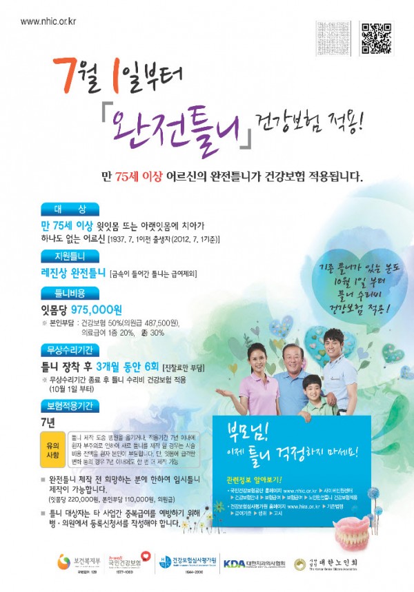 (참고로, 부분틀니의 경우 2013년부터 점차적으로 시행한다고 합니다.)