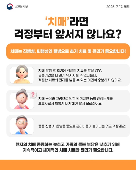 치매는 진행성, 퇴행성인 질병으로 초기 치료 및 관리가 중요합니다!