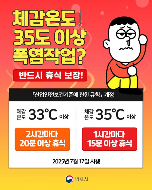 체감온도 35도 이상 폭염작업? 반드시 휴식 보장!