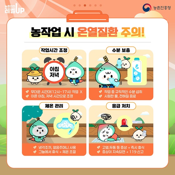 * 폭염특보 발효 시 낮 시간대 농작업 금지.