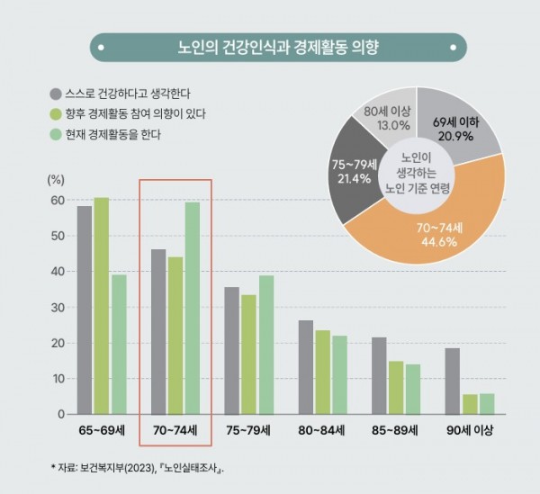 우리나라가 초고령사회에 진입한 가운데 젊은 노인이 늘고 있는 현실을 반영해 ‘노인’의 연령 기준을 단계적으로 상향 조정해야 한다는 제언이 나왔다.