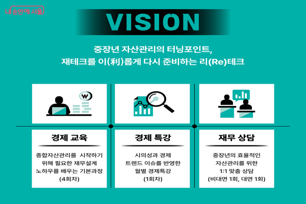 기대 수명이 증가하는 고령 사회에서 노후 준비는 선택이 아닌 필수가 되었다. 은퇴 이후 삶이 안정적이기 위해서는 무엇보다 재정적인 노후 설계가 중요한데, 막상 정보를 얻으려면 한계에 다다르게 된다. 금융 업체에서 제공하는 정보는 한정적인 상품과 서비스 내용을 포함하고 있어 아쉬움이 있다.