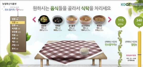 | 탄소 발자국 계산기로 우리 집 식탁도 탄소 중립 실천