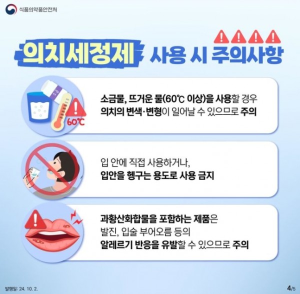 | 의치세정제, 입안서 직접 사용 말아야