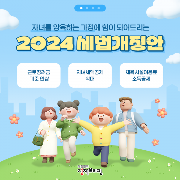 최근 발표된 ‘2024 세법개정안’ 내용 중 자녀를 양육하는 가정에 도움 될만한 주요 소식을 소개해드립니다.