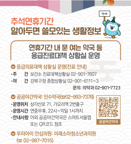 [강북구] 추석연휴기간 알아두면 쓸모있는 생활정보