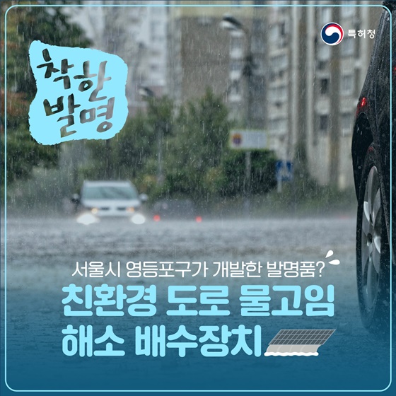 도로 곳곳의 물고임 현상은 보행 불편과 물튀김 피해를 주는데요. 물고임을 해소할 수 있는 친환경 배수장치를 서울시 영등포구에서 개발했습니다!