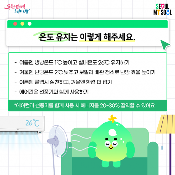 무더위가 계속되면서 에어컨 껐다 켰다를 반복하고 계시나요? 계속되는 폭염에 냉방용품 사용이 점점 늘고 있습니다. 그만큼 전기요금도 후덜덜~한 상황인데요, 오늘은 가정에서 에너지를 줄일 수 있는 방법을 소개합니다. 이번 기회에 우리집 에너지 사용도 한 번 체크해 보세요.