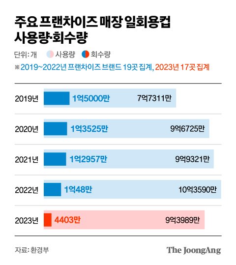[환경] 지난해 카페·패스트푸드점서 쓴 일회용컵 9억 4000만개…지구 두바퀴 반 돈다