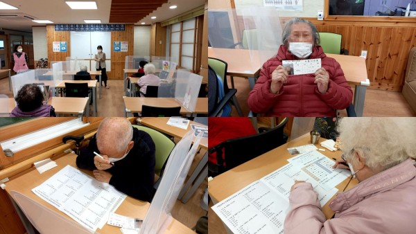 우리 어르신들도 센터에서 국어, 수학 두 과목으로 수능을 진행하였습니다.