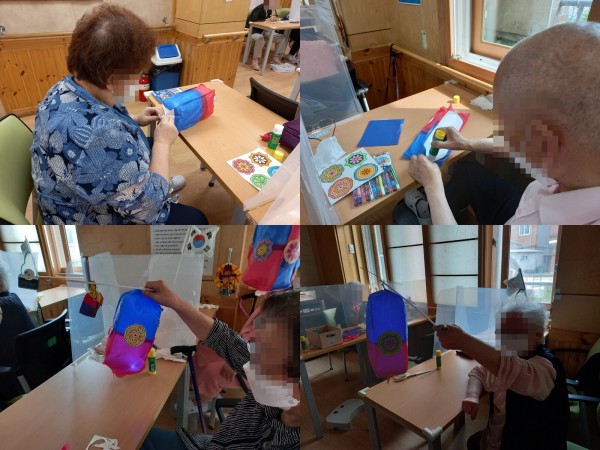 단오날 특히 밤에 주변을 예쁘게 비춰주는 '청사초롱'을 어르신들과 함께 만들면서 어르신들께서