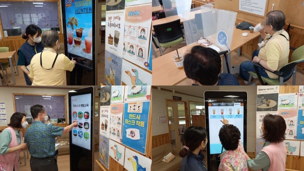 프로그램 시작에 앞서 어르신들에게 키오스크 사용방법을 안내드린 후 '키오스크&카페 체험'을 시작하였습니다.