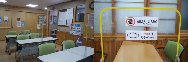 강북데이케어센터에서는 코로나19 감염 예방을 위해 가림판을 설치하였습니다.