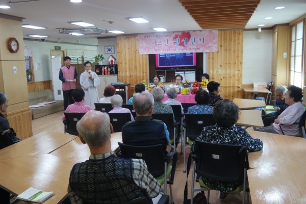 강북데이케어센터에서는 어르신들의 유대감 증진 및 즐거움 제공을 위하여 2018년 9월 어르신 생신잔치를 실시하였습니다. 본 행사는 센터장님 축하말씀을 시작으로 생신축하 노래 부르기, 선물증정식, 보호자에게 받은 손 편지 낭독, 즐거운 노래방강사, 직원들과 함께하는 여흥 순으로 진행하였습니다.