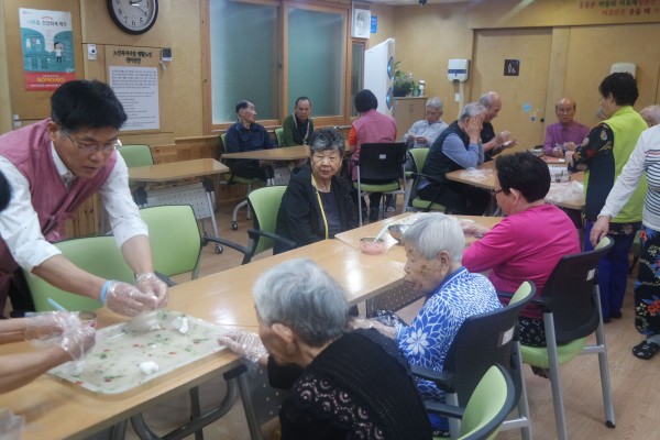 강북데이케어센터에서는 한가위 명절(추석)을 맞이하여 센터 어르신의 유대감 증진, 정서적 지지와 즐거움을 제공하여 드리고자 특별행사를 실시하였습니다. 이번 행사는 센터장님 축하말씀을 시작으로 시립강북노인종합복지관 희망강북봉사단의 한국무용, 설종구님의 트로트 메들리 하모니카 공연, 직원들과 함께 하는 송편빚기 순으로 진행하였습니다. 올해 추석에도 우리 어르신 가정에 ‘더도 덜도 말고 한가위’ 같은 풍요로움과 넉넉함이 가득하기를 기원합니다.