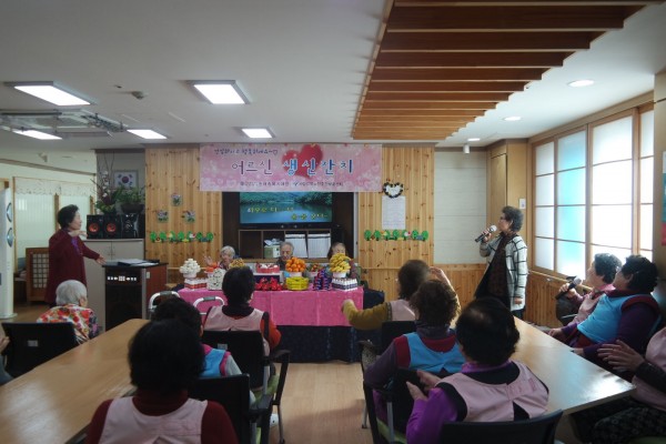 강북데이케어센터에서는 어르신들의 유대감 증진 및 즐거움 제공을 위하여 2018년 2월 어르신 생신잔치를 실시하였습니다. 본 행사는 과장님 축하말씀을 시작으로 생신축하 노래 부르기, 선물증정식, 보호자에게 받은 손 편지 낭독, 직원들과 함께하는 즐거운 노래방 공연 순으로 진행하였습니다.