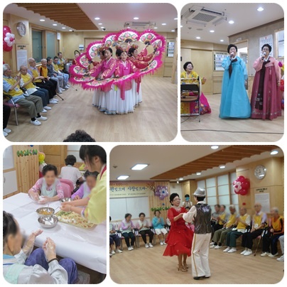 이번 행사에서는 특별공연관람 및 민속음식만들기가 진행되었으며 특별공연으로는 심동예술단단원분들의 부채춤(김기봉 외 5인), 댄스스포츠(심준섭 외 1인), 민요(임현숙 외 3인)공연으로 진행되어 어르신들과 함께 즐거운 시간을 가졌습니다.