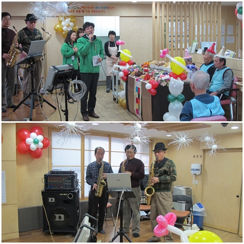 이용 어르신의 생신을 축하하기 위해 강북실버밴드(임선명 단장 외 5명)의 섹스폰 공연이 진행되어 이용 어르신들 모두 즐거운 시간을 보냈습니다.