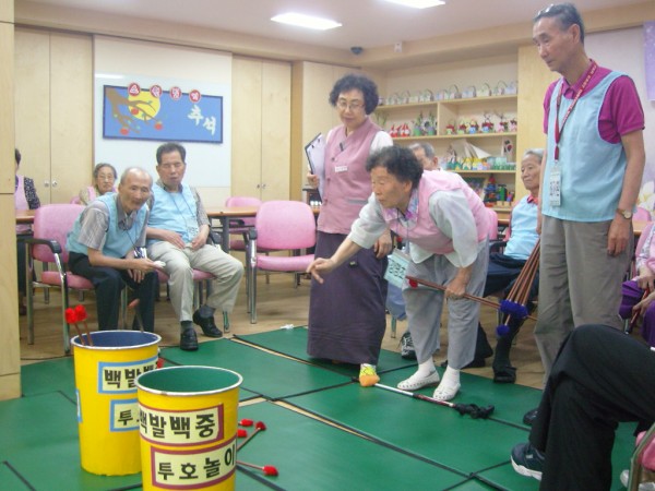 강북데이케어센터에서는 민족 대명절인 한가위를 맞이하여 전통 민속놀이와 명절맞이 프로그램을 진행하였습니다. 명절음식인 송편빚기, 산적꼬치 등을 만들며 옛 이야기를 나누고 오랫만에 둘러앉아 윷놀이도 하고 투호놀이를 하면서 즐거운 시간을 보냈습니다. 이번 행사를 통해 옛 풍습을 되살리고 이용자 간 회상능력 증진 및 유대감을 높일 수 있는 기회가 되었습니다.