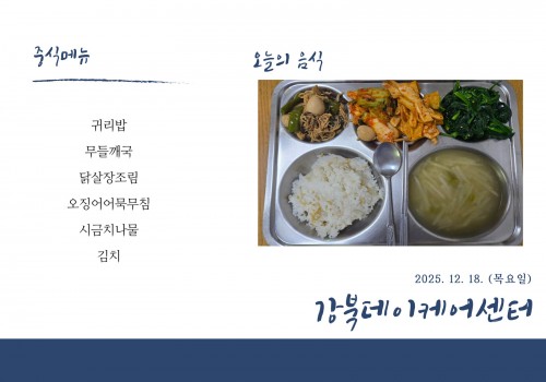 [데이케어] 2025년 12월 18일(목) 중식·간식·석식 식단