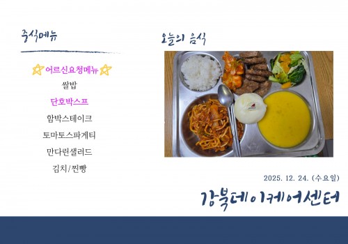 [데이케어] 2025년 12월 24일(수) 중식·간식·석식 식단