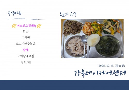 [데이케어] 2025년 12월 5일(금) 중식·간식·석식 식단