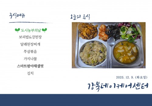 [데이케어] 2025년 12월 9일(화) 중식·간식·석식 식단