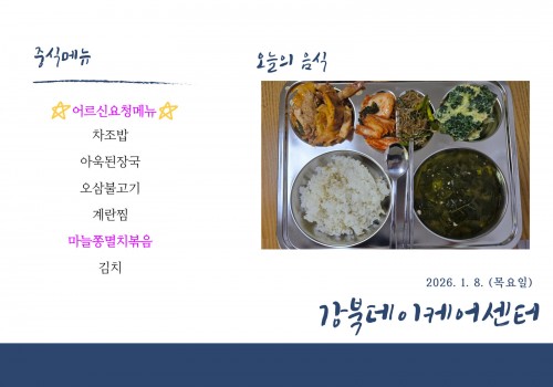 [데이케어] 2026년 1월 8일(목) 중식·간식·석식 식단