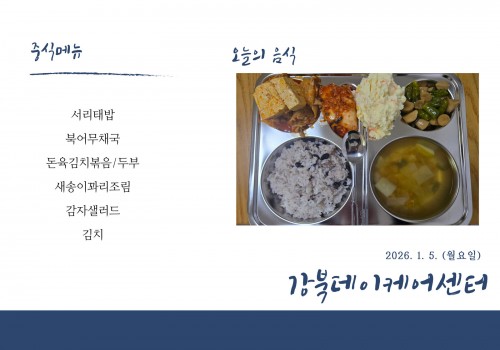 [데이케어] 2026년 1월 5일(월) 중식·간식·석식 식단