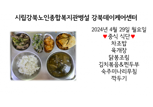 [데이케어] 2024년 4월 29일(월) 중식·간식·석식 식단