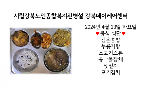 [데이케어] 2024년 4월 23일(화) 중식·간식·석식 식단