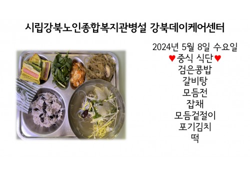 [데이케어] 2024년 5월 8일(수) 중식·간식·석식 식단