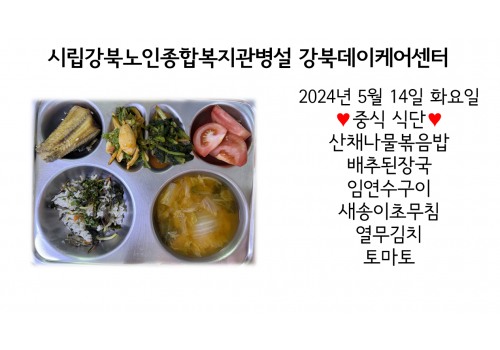 [데이케어] 2024년 5월 14일(화) 중식·간식·석식 식단