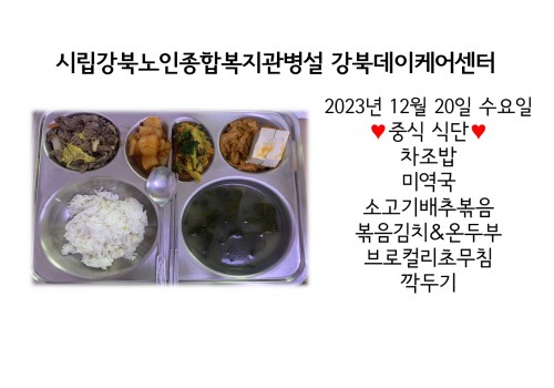 [데이케어] 2023년 12월 20일(수) 중식 식단