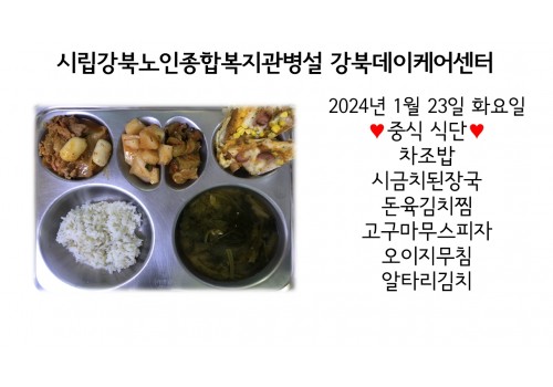 [데이케어] 2024년 1월 23일(화) 중식 식단