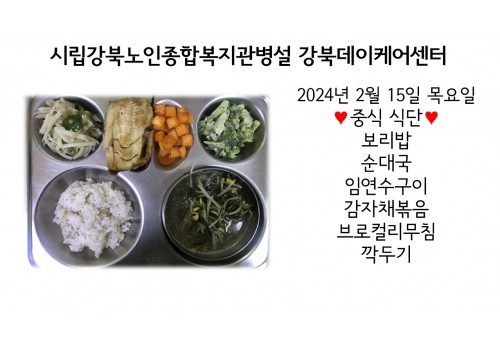 [데이케어] 2024년 2월 15일(목) 중식 식단