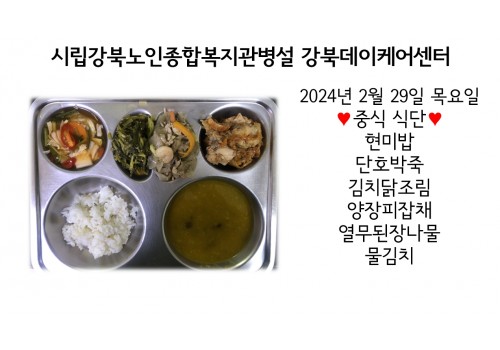 [데이케어] 2024년 2월29일(목) 중식 식단