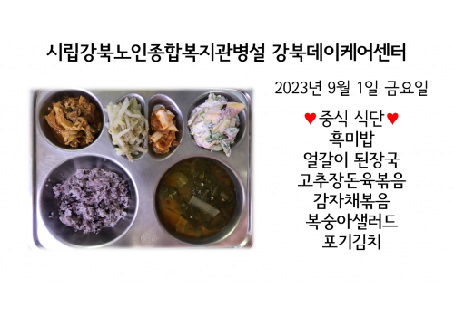 [데이케어] 2023년 9월 1일(금) 중식 식단
