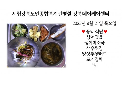 [데이케어] 2023년 9월21일(목) 중식 식단